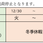 - 2025年 年末年始の営業時間のお知らせ棚卸による出荷停止日 並びに 冬季休暇のご案内 拝啓 貴社ますますご盛栄のこととお慶び申し上げます。平素は御愛顧を賜り、厚く御礼申し上げます。さて、棚卸による出荷停止日 並びに 冬季休暇についてお知らせさせていただきます […]